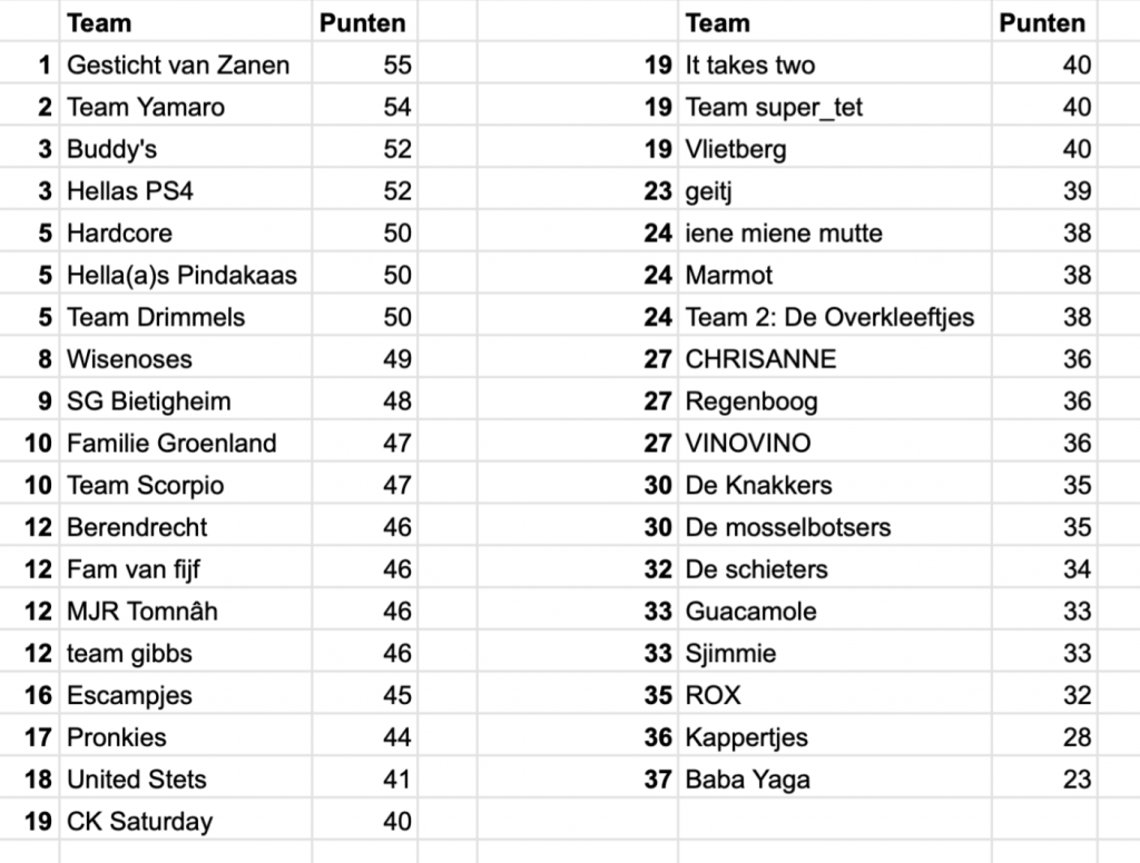 Van harte gefeliciteerd met de eerste plaats! Op nummer 2 is geëindigd Team Yamaro en er is een gedeelde nummer 3 voor de Buddy’s en Hellas PS4.