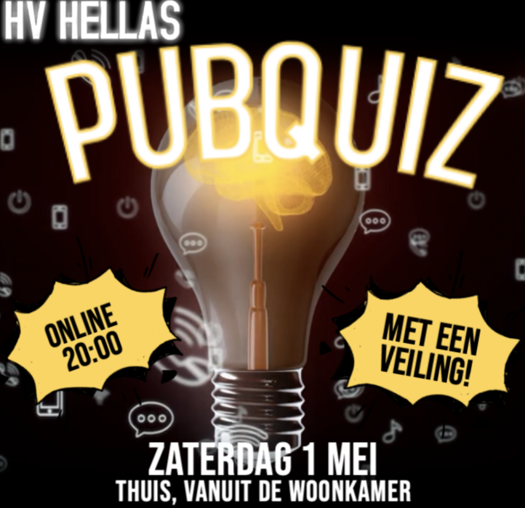 Op 1 mei om 20:00 uur kun je weer thuis vanaf de bank meedoen aan de HV Hellas pubquiz gepresenteerd door Jeroen. De herenselectie organiseert tijdens de quiz nog een prijzenveiling om geld op te halen voor de club!
