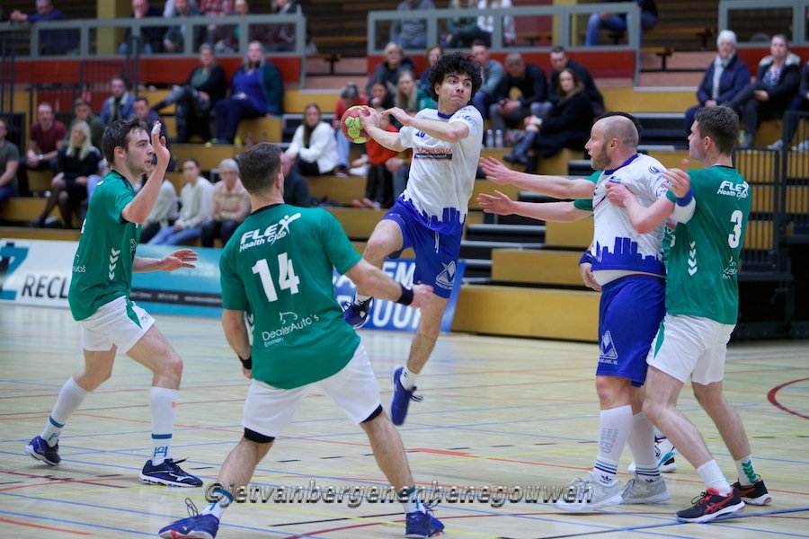 In het tweede half uur kon Hellas door Twan Klompé, Antón Rodriguéz en Ismail Fakhir nog bijblijven tot 25-25. Maar ondanks doelpunten van Olivier Beltman en Michael Pronk besliste Arnhem in de slotminuut alsnog de partij: 27-28.