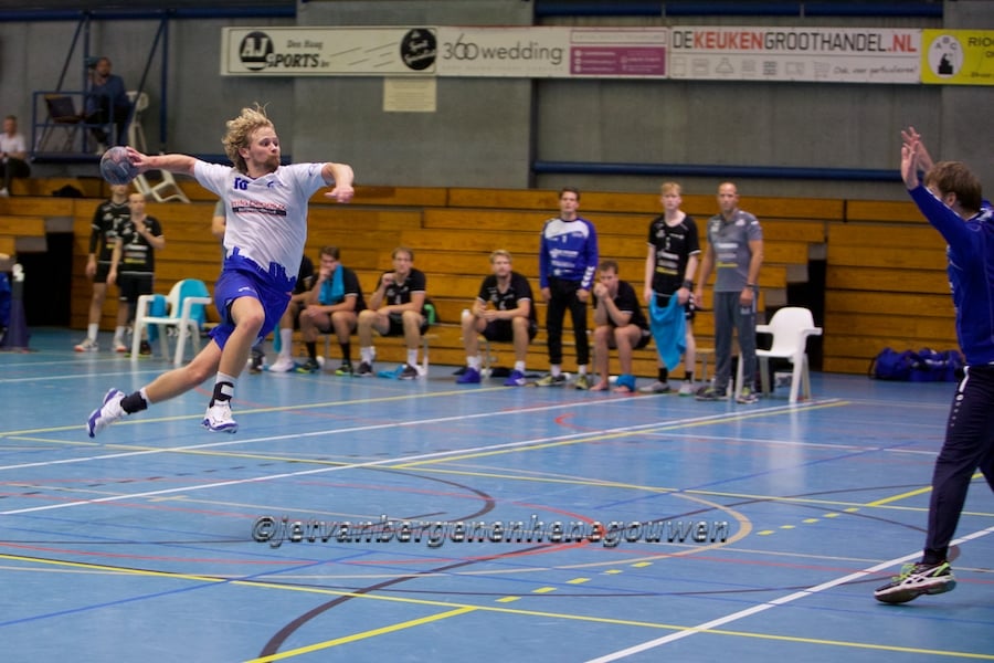De doelpunten waren schaars. Vooral in de eerste helft kwam de scoringsmachine stroef op gang. Dat was mede de verdienste van de beide keepers. Quincy Kompier toonde zich in het Hellasdoel een echte aanwinst. Van Stefan Stapper bij WHC/Hercules tussen de palen weten we al jaren dat hij voortreffelijk kan keepen. De 8-8 ruststand was mager, maar de eerste helft verveelde al geen moment.