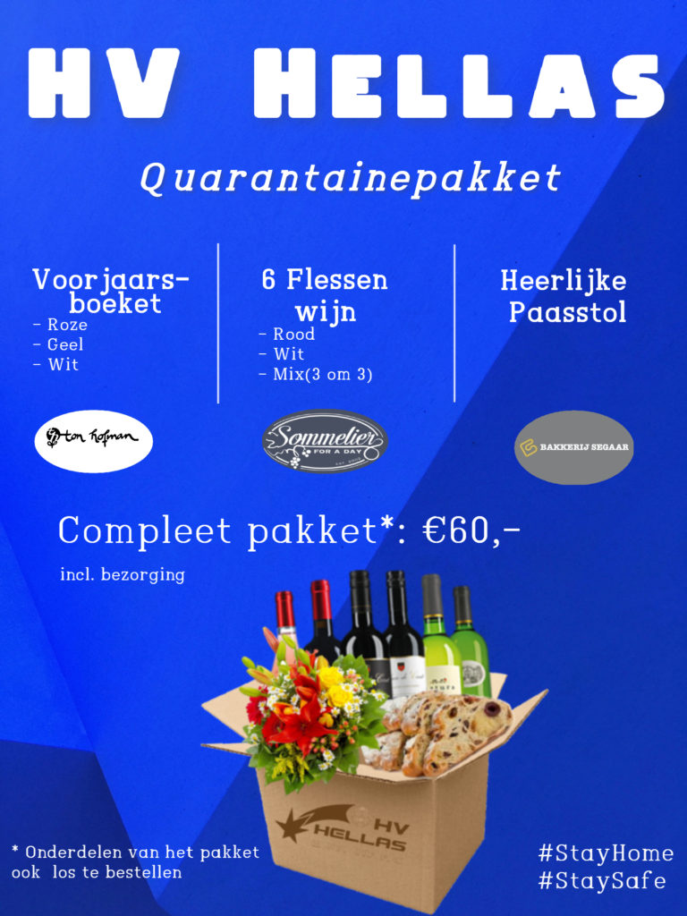 Je kunt een voorjaarsboeket, een Hellas-Blijf-Maar-Thuis wijnpakket of een paasstol bestellen, alle drie kan natuurlijk ook! Alles wordt thuisbezorgd! Natuurlijk kun je niet alleen voor jezelf, maar ook voor je opa of oma/beste vriend(in)/collega bestellen (wel alleen binnen Den Haag). Zo helpen we elkaar, de retail-sponsoren van Hellas en de club door de coronacrisis heen!