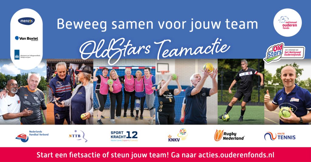 De OldStars teamactie is een fietstour van 8 dagen door Nederland van 25 september tot en met 2 oktober. OldStars ambassadeur Léon van Schie fietst in deze tour élke dag met een bakfiets langs een OldStars club. Op elke locatie is een gezellig en sportief evenement of een workshop in het teken van bewegen en ontmoeten. We eindigen de fietstour op Nationale Ouderendag (2 oktober) op Handbalvereniging Hellas! Jij hebt nu de kans om als OldStars team (aantal deelnemers mag je zelf bepalen), particulier of als individuele deelnemer deel te nemen aan de actie door in je eigen omgeving te fietsen. Fiets je mee?