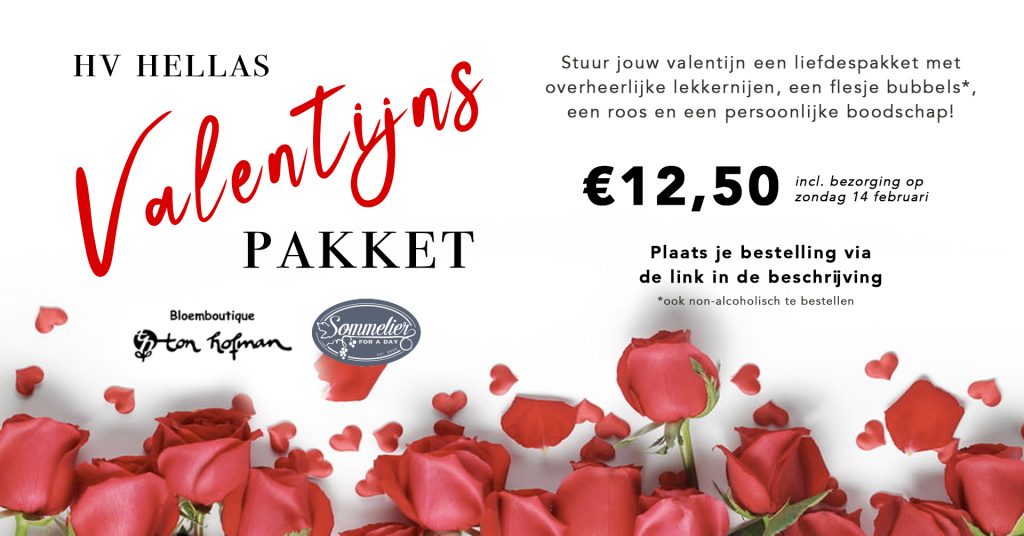 Wie ga jij verrassen deze Valentijn? Stuur via Hellas een Valentijnspakket vol lekkernijen naar je geliefde, beste vriend(in) of trainer. Daarmee maak je de ontvanger blij, en sponsor je ook nog eens de club!