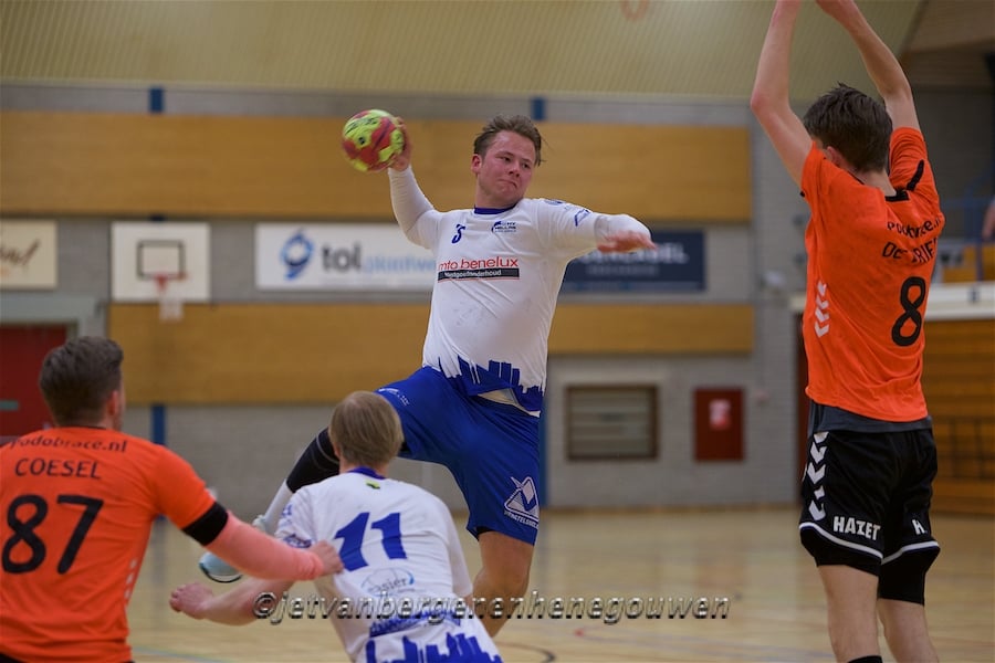 Van der Linden, die op zijn vijfde jaar met handballen begon bij Hellas en een leerzaam avontuur beleefde bij Aalsmeer, over de tweestrijd: ,,Ik vind, dat wij als team niet genoeg samenspel lieten zien. We speelden met weinig discipline en maakten te gehaaste en domme fouten. Dat laat zich ook terugzien in het aantal doelpunten dat wij hebben gemaakt. In de dekking vond ik dat we nog wel oké stonden in de meeste gevallen. Twintig doelpunten tegen is niet veel, maar aanvallend was zeventien veel te weinig. Dat kunnen we zeker beter.”